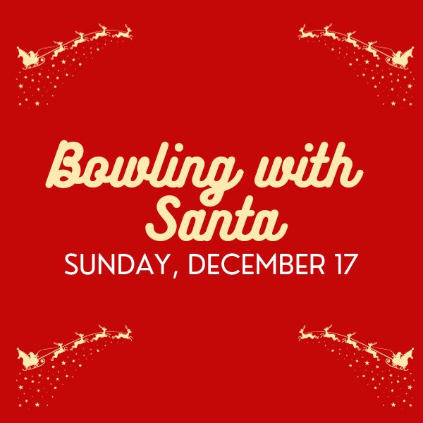2 hours of bowling, shoe rentals, holiday goodies, cookies & hot cocoa, take your own photos with Santa himself!